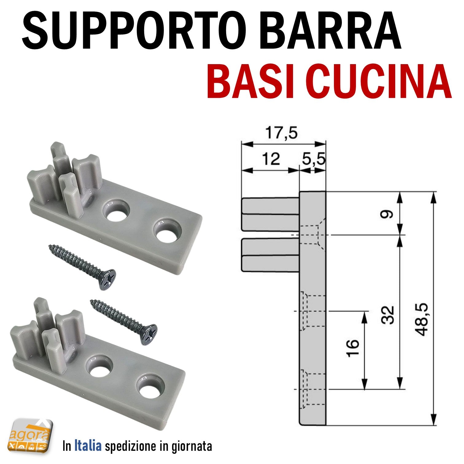 SUPPORTO CONNETTORE BARRA BASE CUCINA ALLUMINIO 18X18mm X VITI EURO BOX basi cucine bussolotti bussolotto albeam emuca in plastica da avvitare per traverso collegamento alluminio