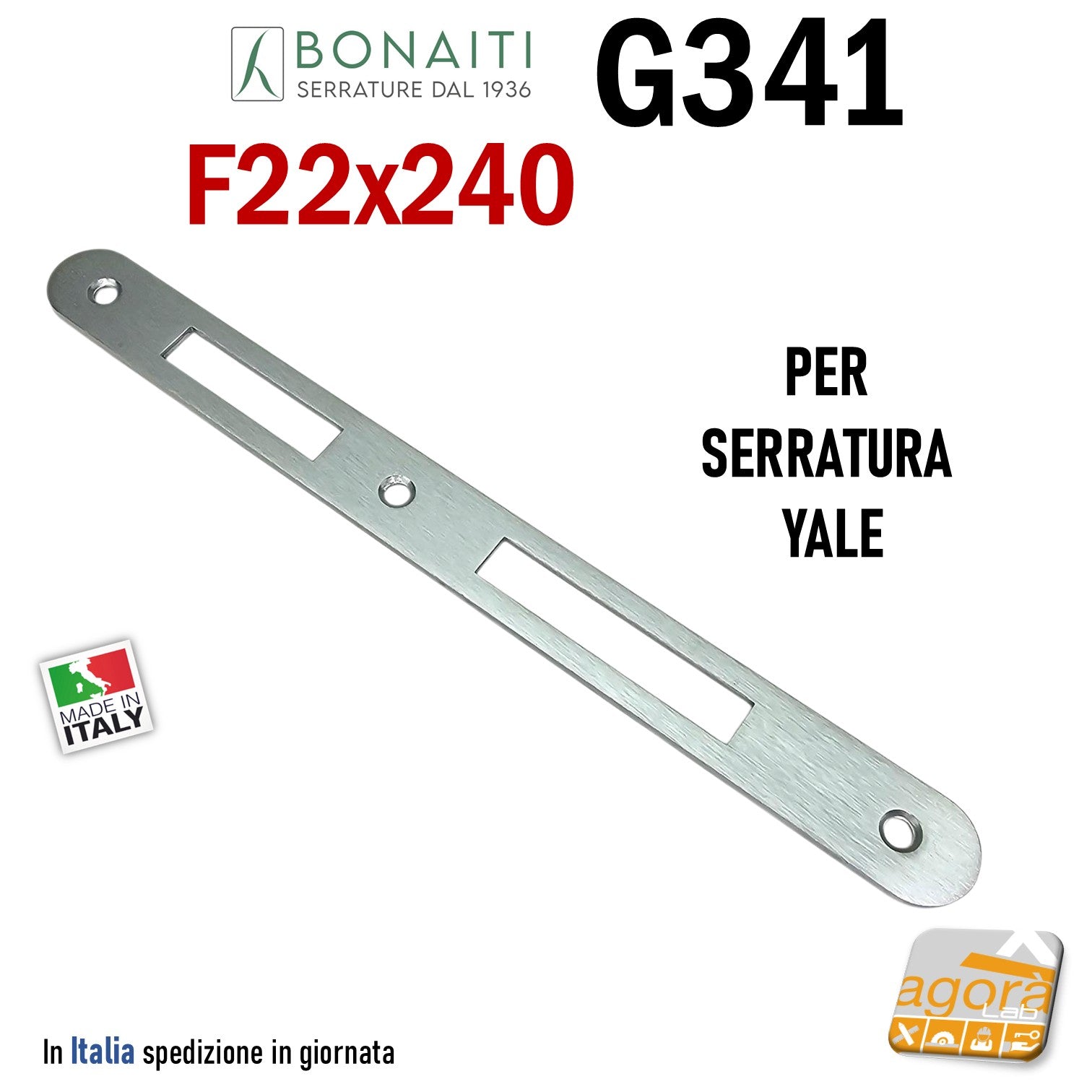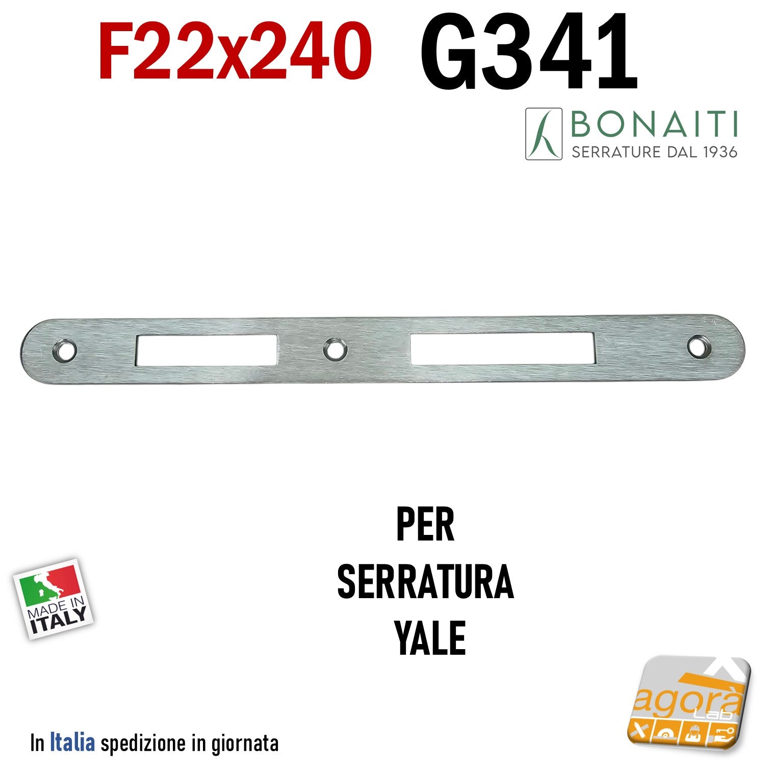 Riscontro Gaccia G341 Bonaiti 240x22 x Serrature C22T YALE Contropiastra serratura Cromo satinato
