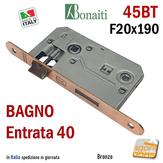 SERRATURA PORTA FRONTALE 20x190mm TONDO E40 I70 BONAITI 45T BRONZO BAGNO PICCOLA WC DOPPIO QUADRO