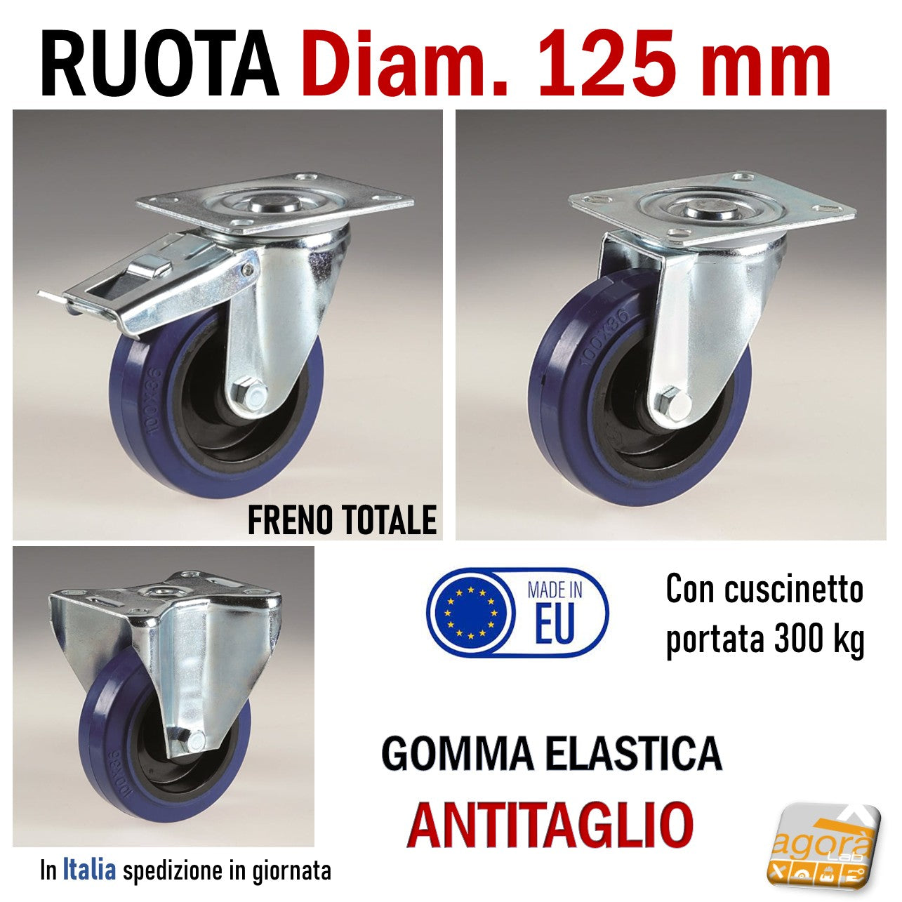 ruota x carrelli ruota per carrello in gomma elastica blu alta portata antitraccia antimacchia antitaglio diametro 125mm piastra grande 120x85 117x85mm fori interasse 80x60mm alta portata pesante fissa cuscinetti a sfera e rulli