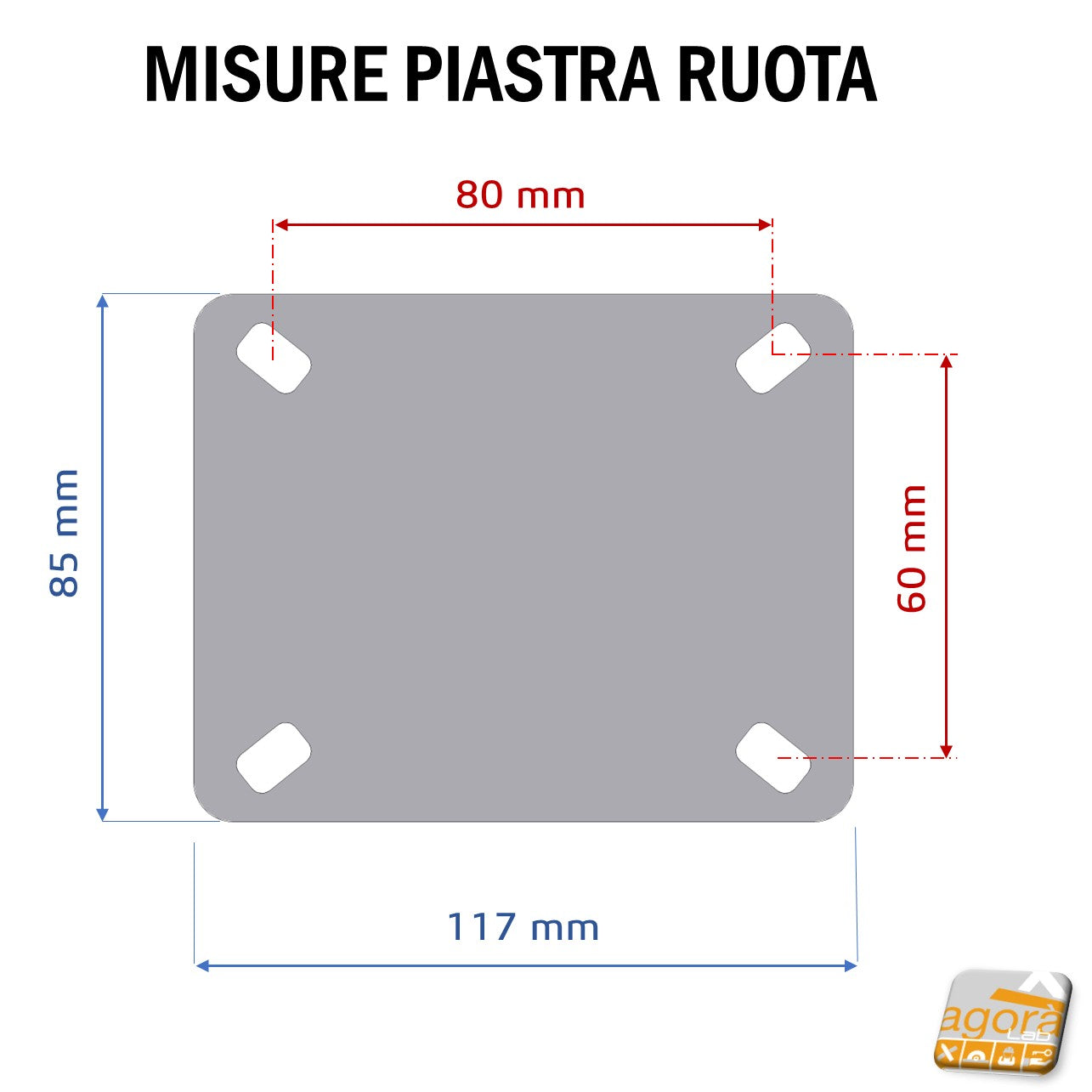 ruota x carrelli ruota per carrello in gomma elastica blu alta portata antitraccia antimacchia antitaglio diametro 125mm piastra grande 120x85 117x85mm fori interasse 80x60mm alta portata pesante senza frenogirevole cuscinetti a sfera e rulli