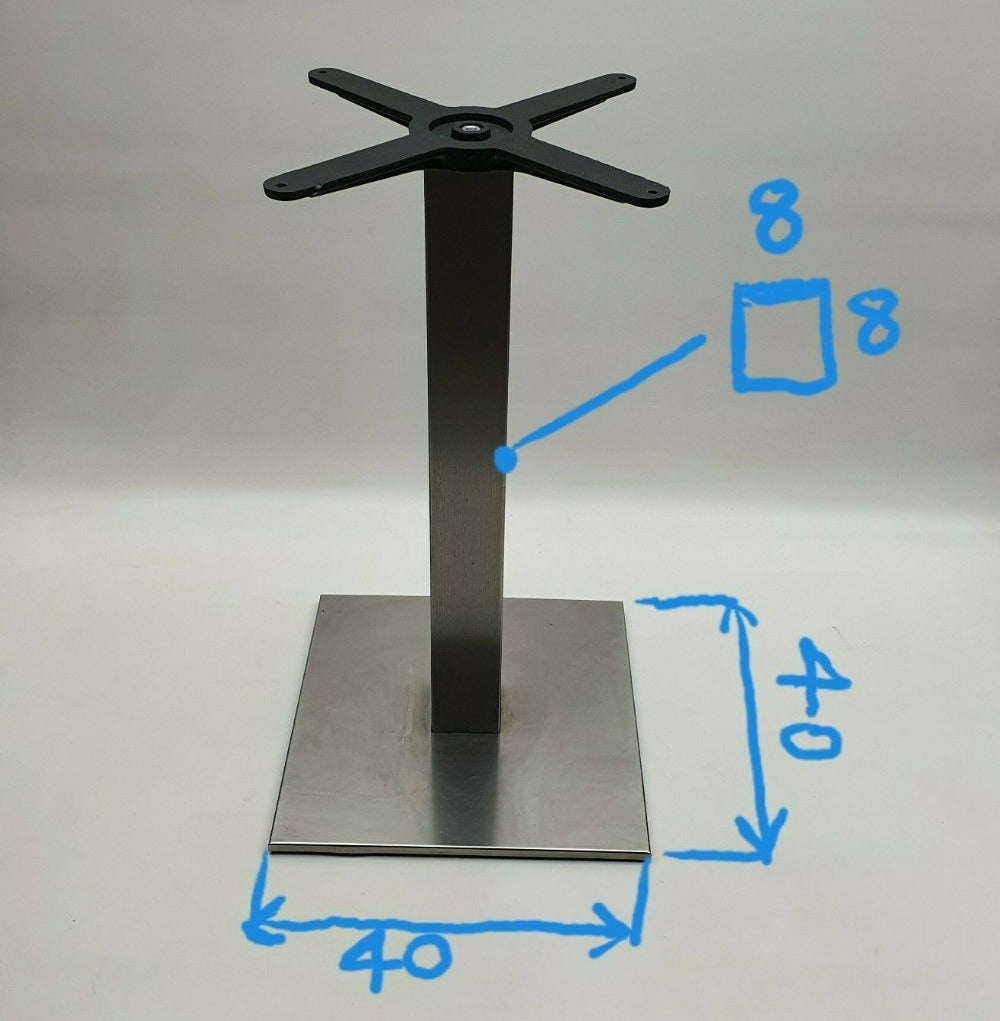 BASE TAVOLO FUSTO INOX SATINATO ALTEZZA 73CM TUBO QUADRO 8x8CM BASE INOX 40x40 base ghisa