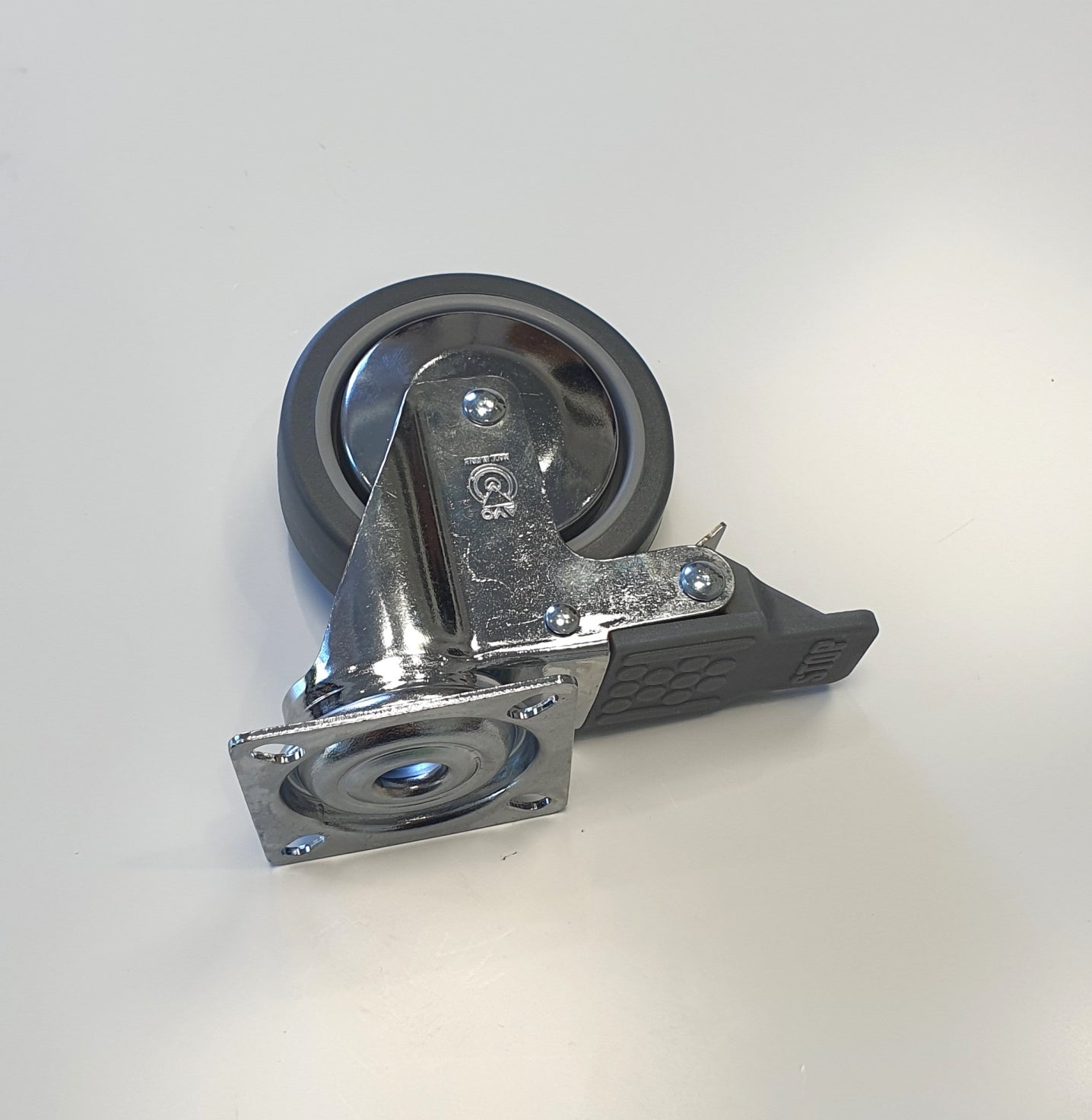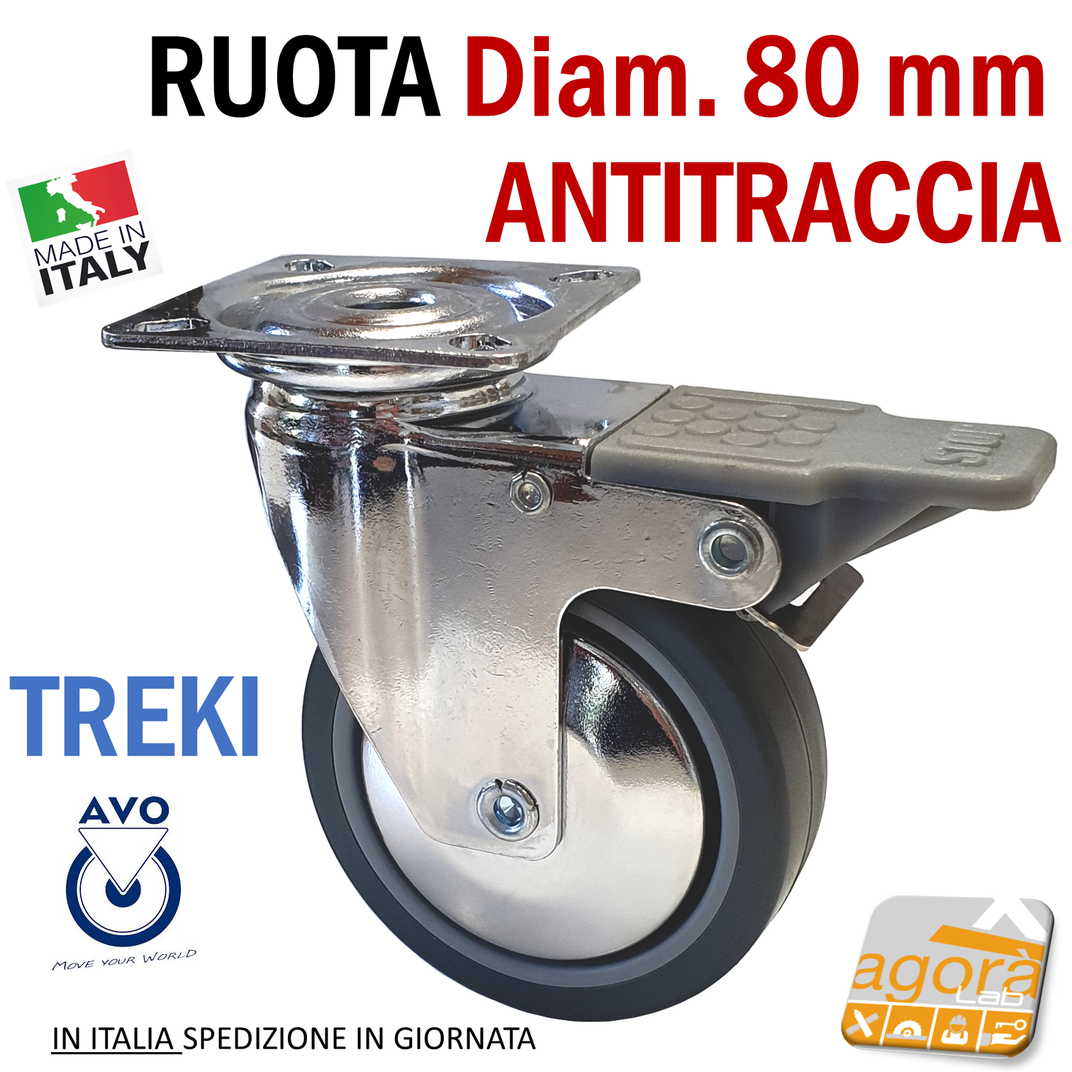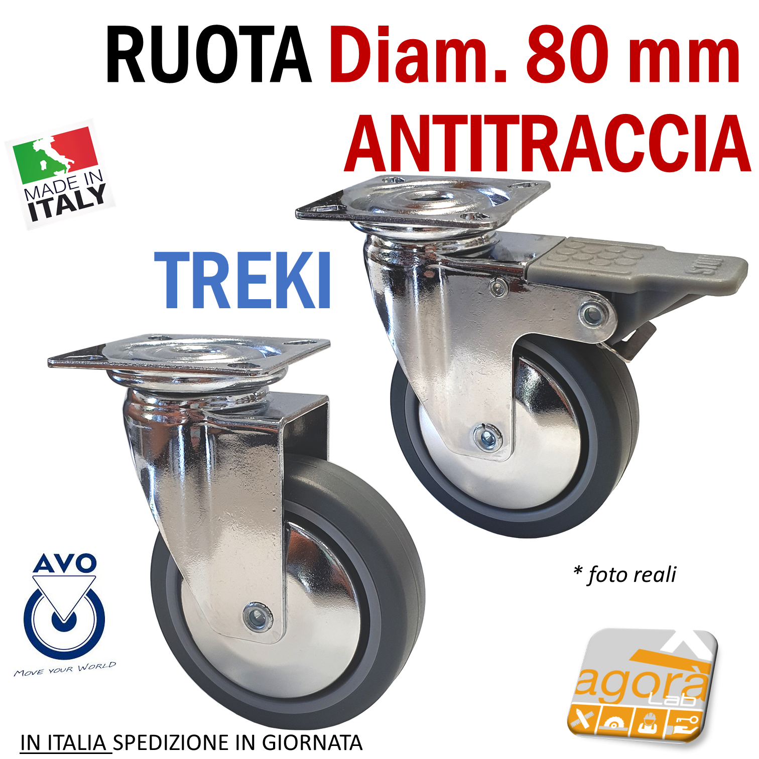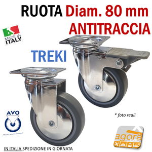 Art. 104753-113623 WHEEL WITH SWIVEL PLATE D80MM IN SILENCED NON-MARKING GRAY RUBBER WITH BRAKE AND WITHOUT BRAKE TREKI