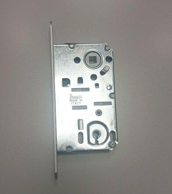 Serratura per porte realizzata in metallo con scrocco magnetico. Originale, prodotta in Italia e compatibile con le normali serrature in commercio (verificare misura del frontale, entrata maniglia e interasse)