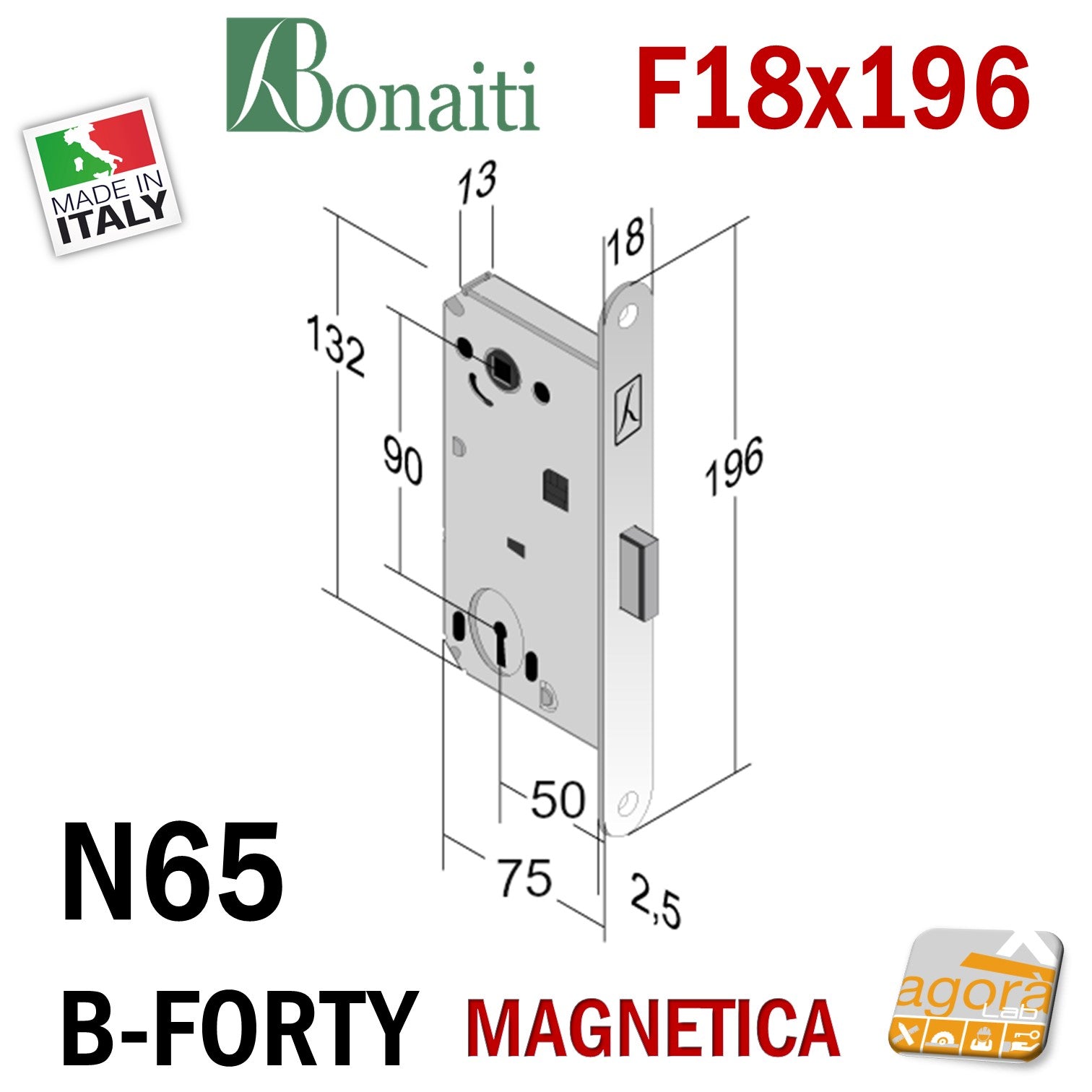 SERRATURA PORTA PATENT MAGNETICA B-FORTY BONAITI N65 FRONTALE 18X196MM E50 I90 v2