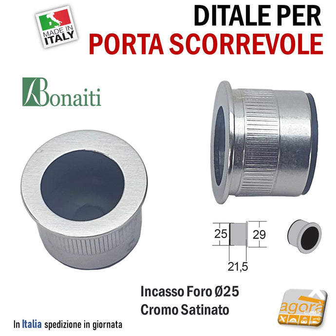 MANIGLIA DITALE DI TRASCINAMENTO PER PORTA SCORREVOLE SCRIGNO INCASSO FORO 25 D29 CROMO SAT BONAITI