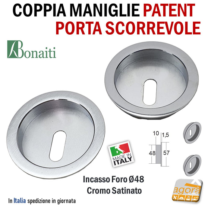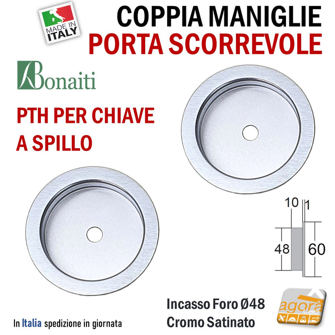 MANIGLIA PER PORTA SCORREVOLE BOCCHETTA SCRIGNO SPILLO INCASSO FORO 48 D60 CROMO SAT BONAITI PTH CHIAVE
