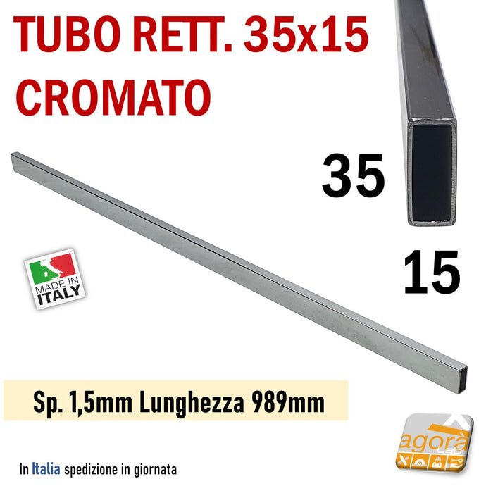 TUBO RETTANGOLARE CR 35X15MM SP.1,5MM L989 BARRA PORTABROCHE ARREDO NEGOZIO