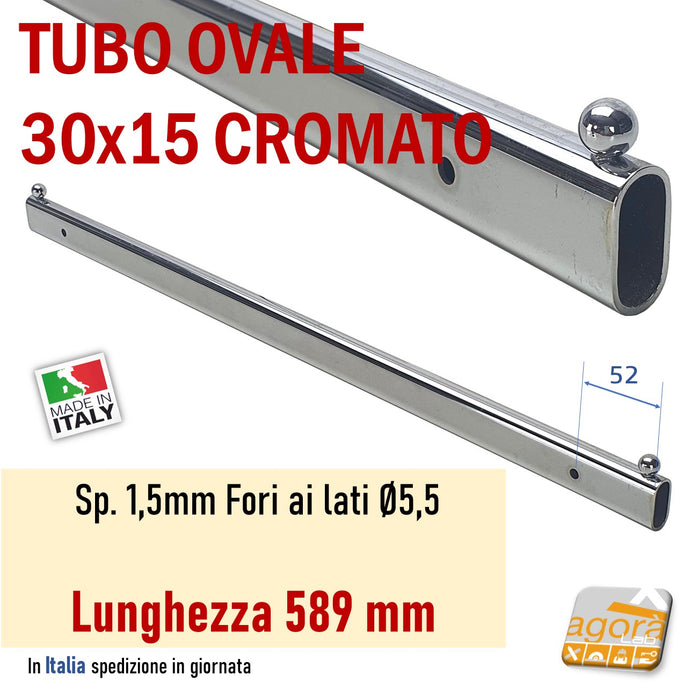 TUBO OVALE CR 30X15 C-FORI 589-989-1189 BARRA PORTABROCHE APPENDERIA ARREDO NEGOZIO p60 p100 p120