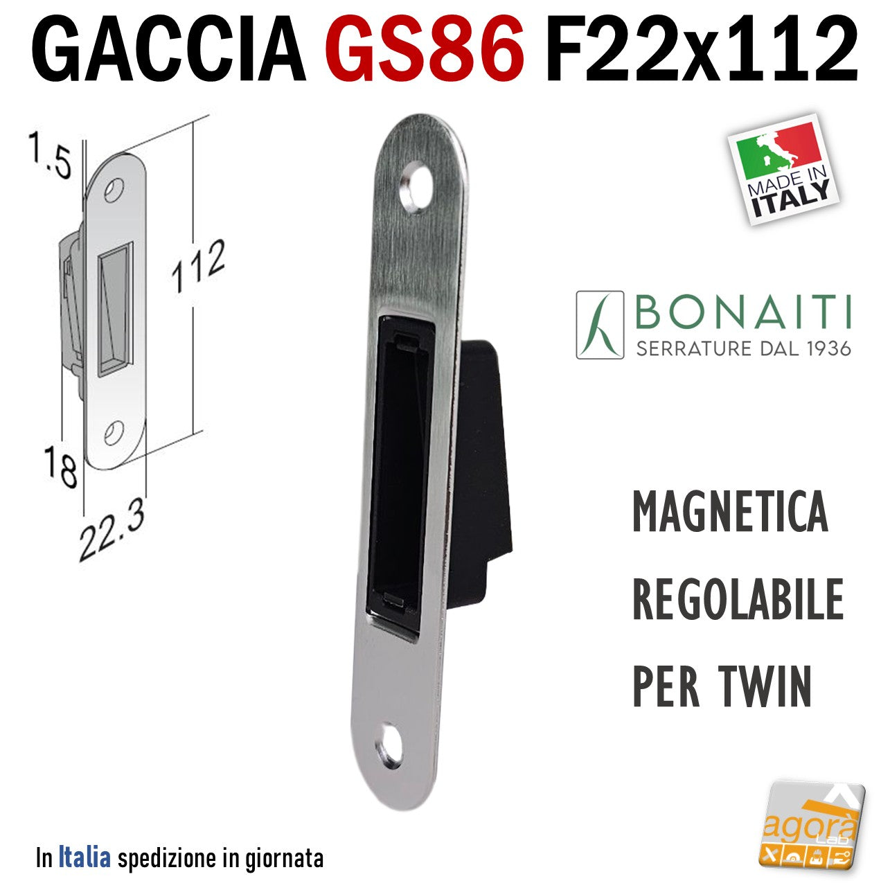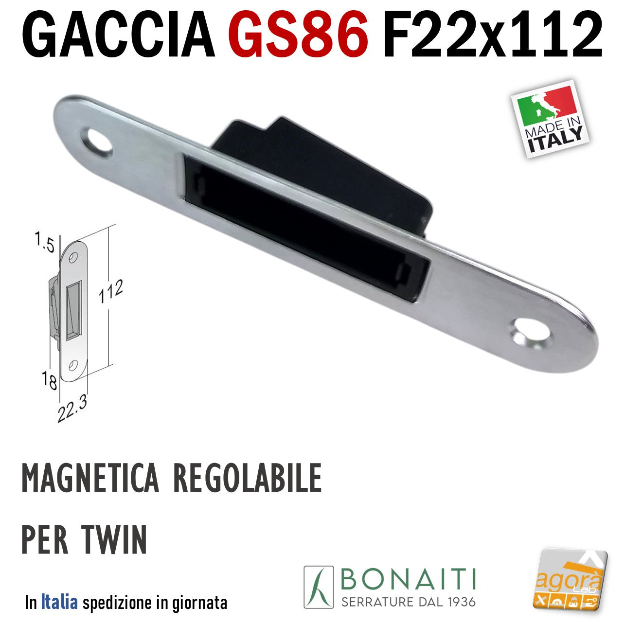 contropiastra GS86 per serratura porta bonaiti B-Twin TWIN frontale 112x22mm gaccia incontro riscontro serrature Bonaiti magnetiche regolabile sostituisce g986
