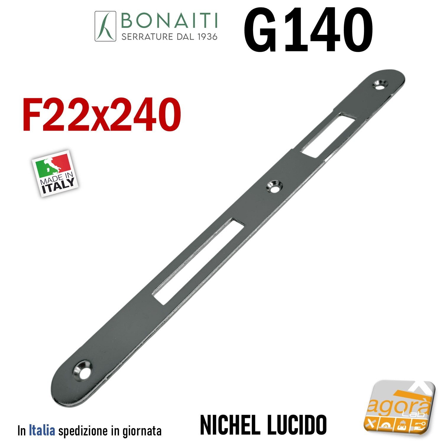 riscontro incontro contropiastra gaccia per serratura porta Bonaiti G140 140 Bordi tondi frontale 240x22mm lunghezza 24cm 22x240mm nichel lucido nichelato lucido per serrature 540 T e 040 T