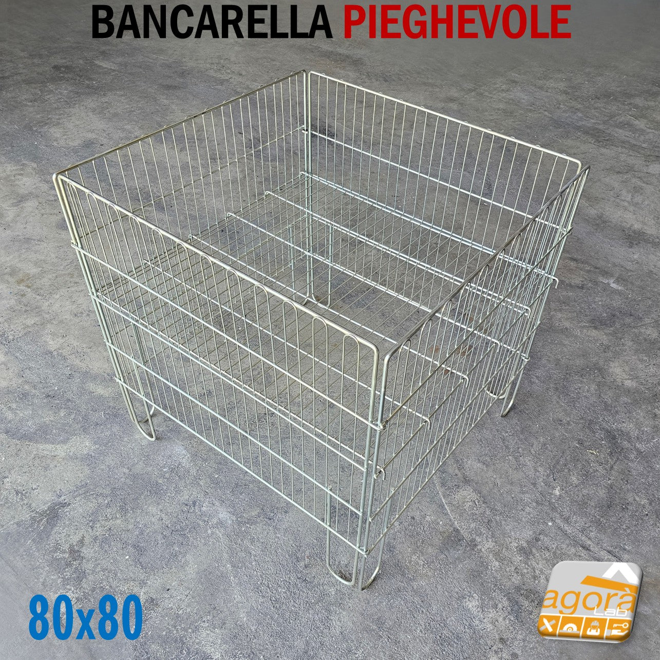 BANCARELLA PIEGHEVOLE 80x80x80H ESPOSITORE CESTA CESTONE CON RIPIANO MOBILE X NEGOZI