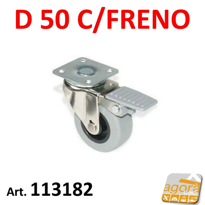 1-20pz RUOTE RUOTA GIREVOLE CON PIASTRA DIAMETRO 50mm - 5cm CON FRENO CROMATA GRIGIO