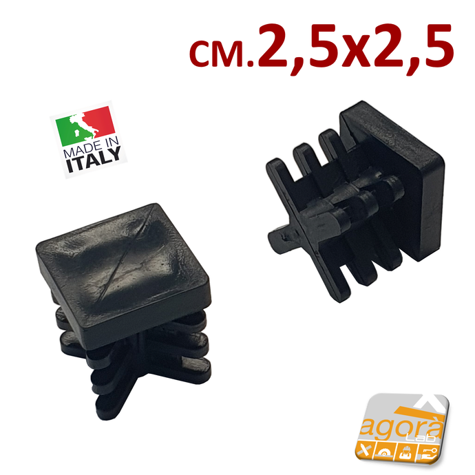 100pz TAPPI TAPPO QUADRATO 25x25 NERO PUNTALE IN PLASTICA cm 2,5x2,5 ALETTATO