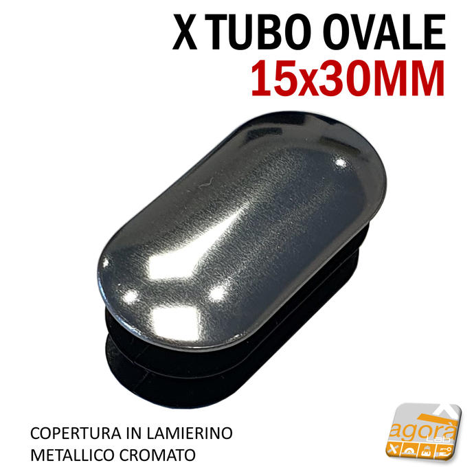 10pz TAPPI TAPPO FERMACAPO ABS CROMATO X TUBO OVALE 30x15mm X GANCIO NEGOZIO