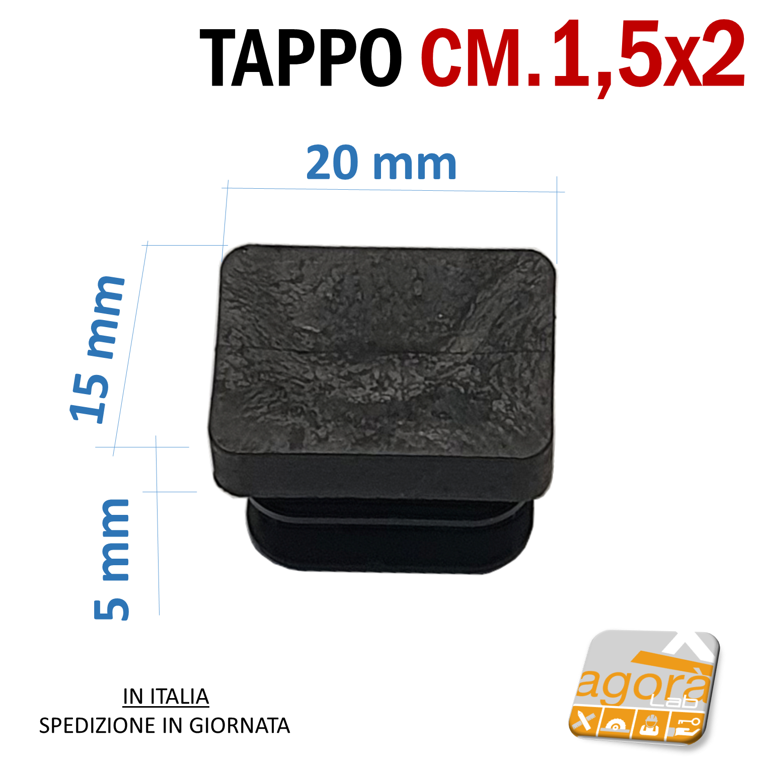 TAPPI TAPPO RETTANGOLARE 15x20 NERO PUNTALE PLASTICA cm 1,5x2 SOTTOPIEDE ALETTATO