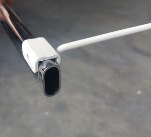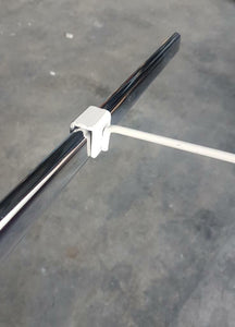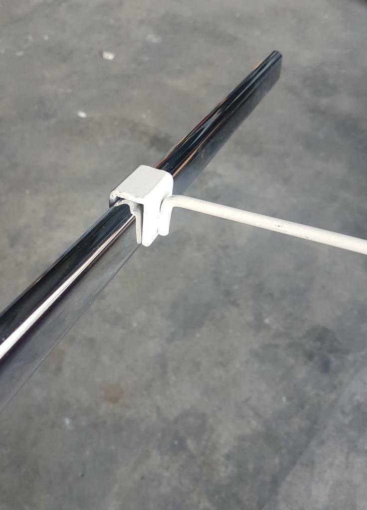 Gancio molto robusto di colore bianco lunghezza totale filo 250mm, utile circa 200mm adatto per  barra da 15mm - sia rettangolare che tubo ovale (come si vede nelle foto)