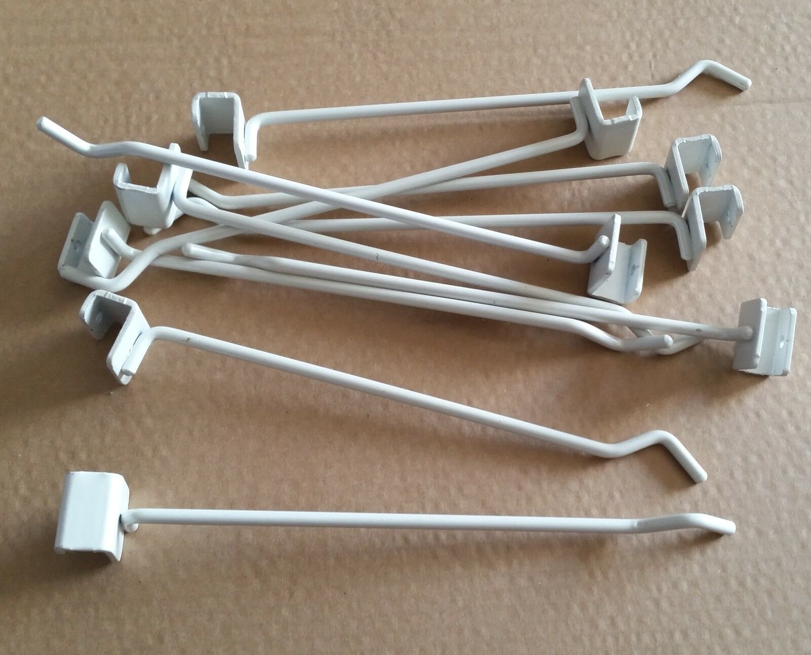 10pz GANCIO GANCI CM.25 ATTREZZATURA NEGOZIO x barra 30x15 filo D6 B.CO USATO.