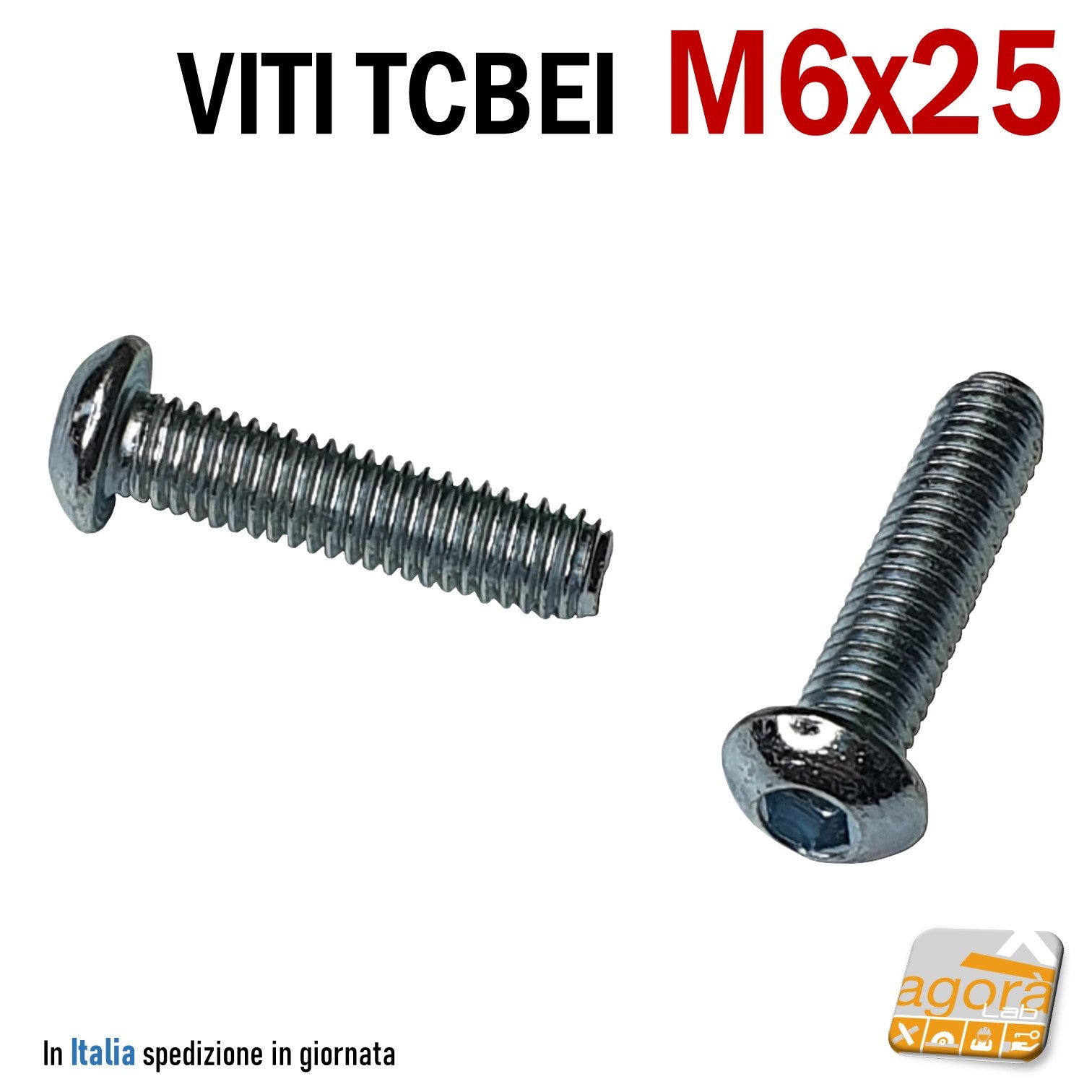 50pz VITE VITI TCBEI M 6x25 ZINCATO BIANCO TESTA CILINDRICA BOMBATA BRUGOLA MA6
