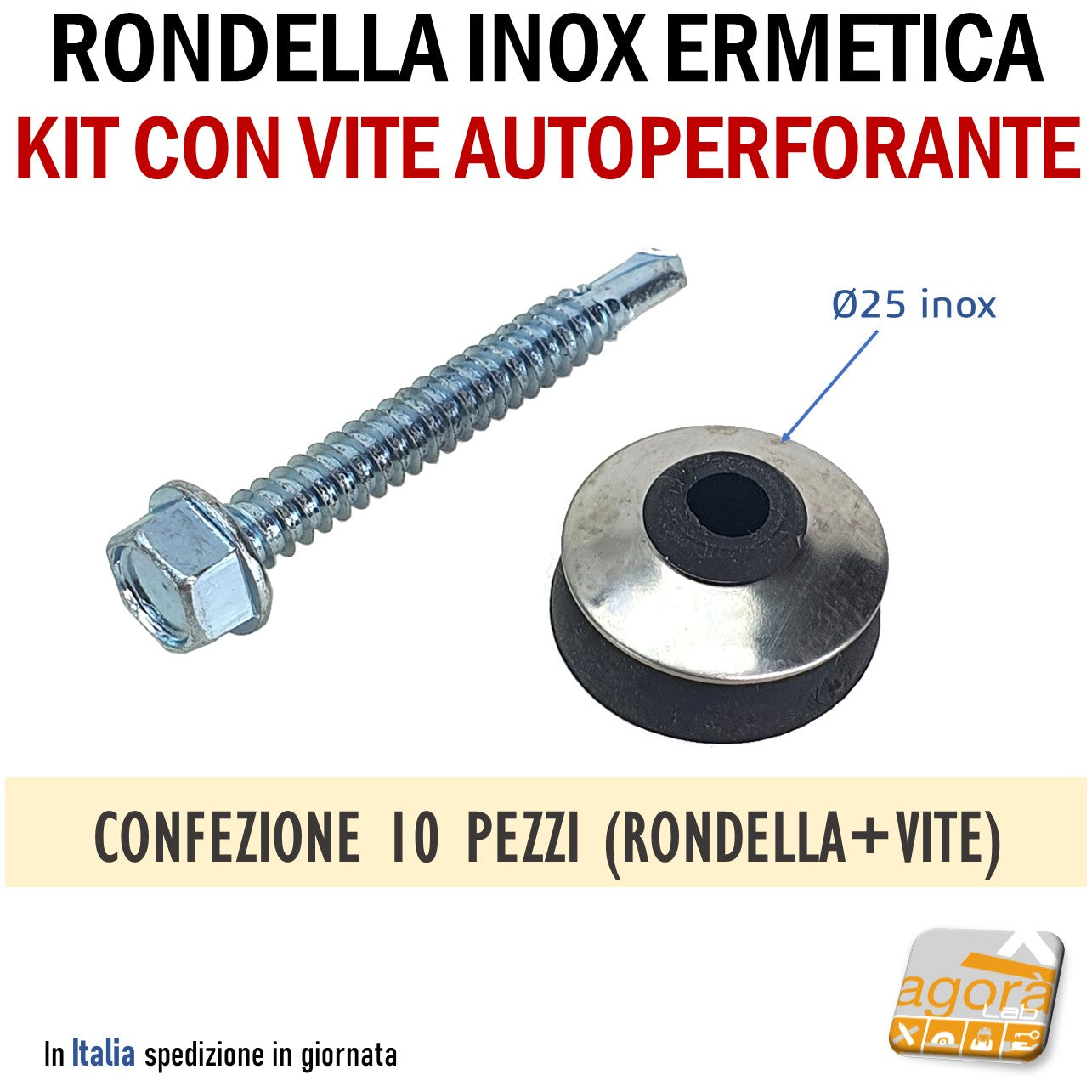 RONDELLA ERMETICA INOX D25 CON VITE PER METALLO TE 6X50MM AUTOPERFORANTE KIT 10 PEZZI