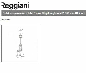KIT SOSPENSIONE LAMPADA 2 mt PER BINARIO ELETTRIFICATO REGGIANI BIANCO CROMATO FUNE ACCIAIO
