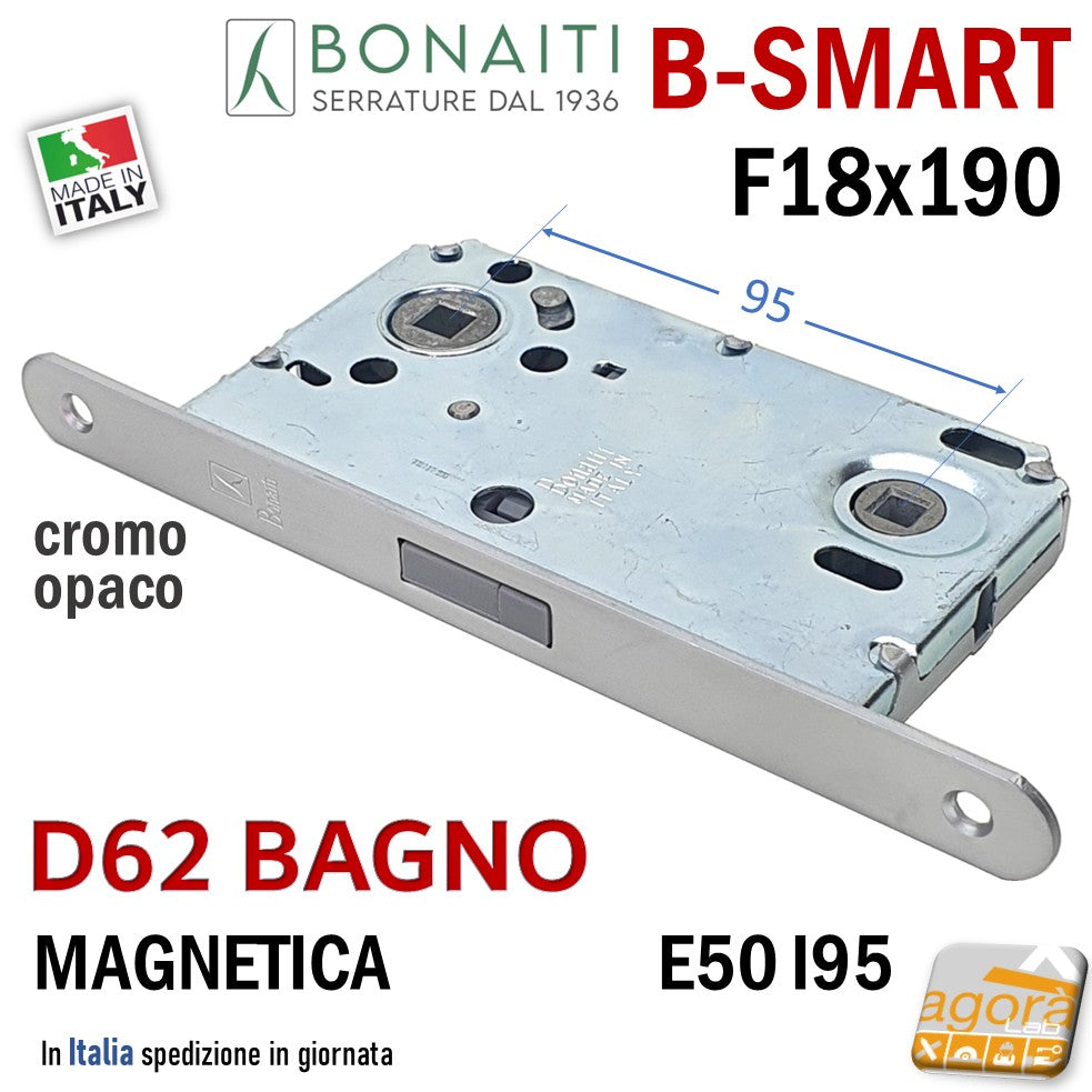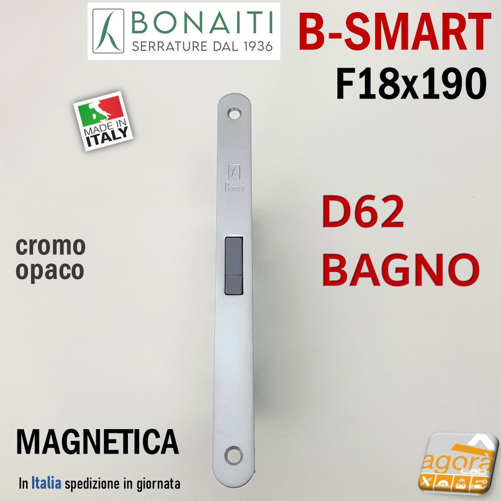 SERRATURA PORTA MAGNETICA B-SMART BONAITI D62 BAGNO FRONTALE 18X190MM E50 I95 CROMO OPACO