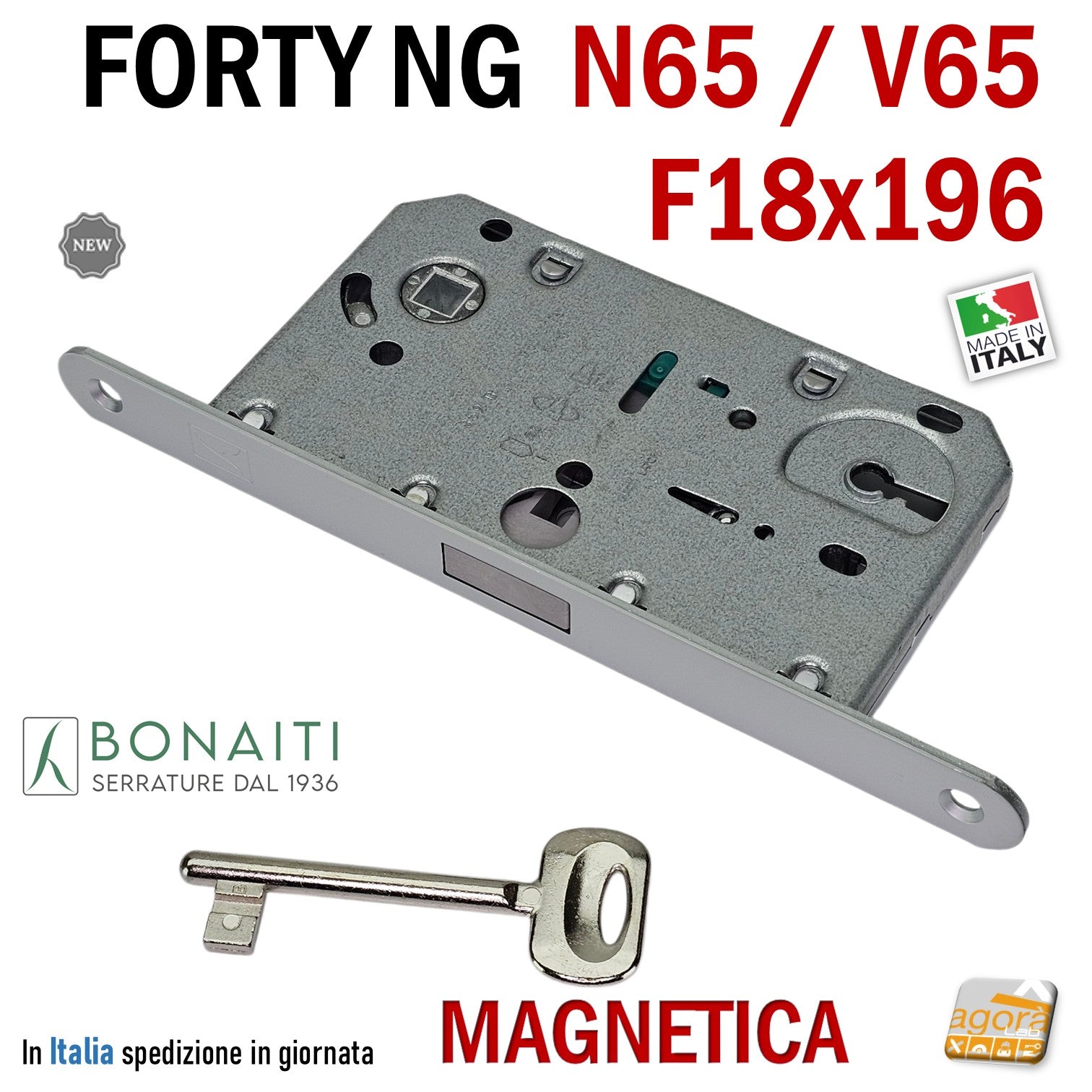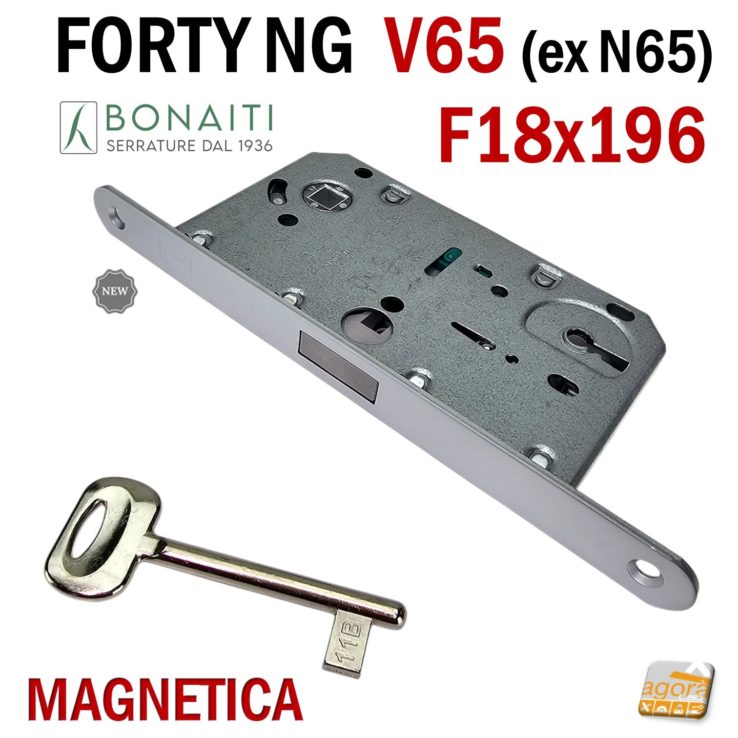 Art.115886 SERRATURA PER PORTA BONAITI F18X196 Modello V65 (ex N65) CHIAVE PATENT Entrata 50 Interasse 90