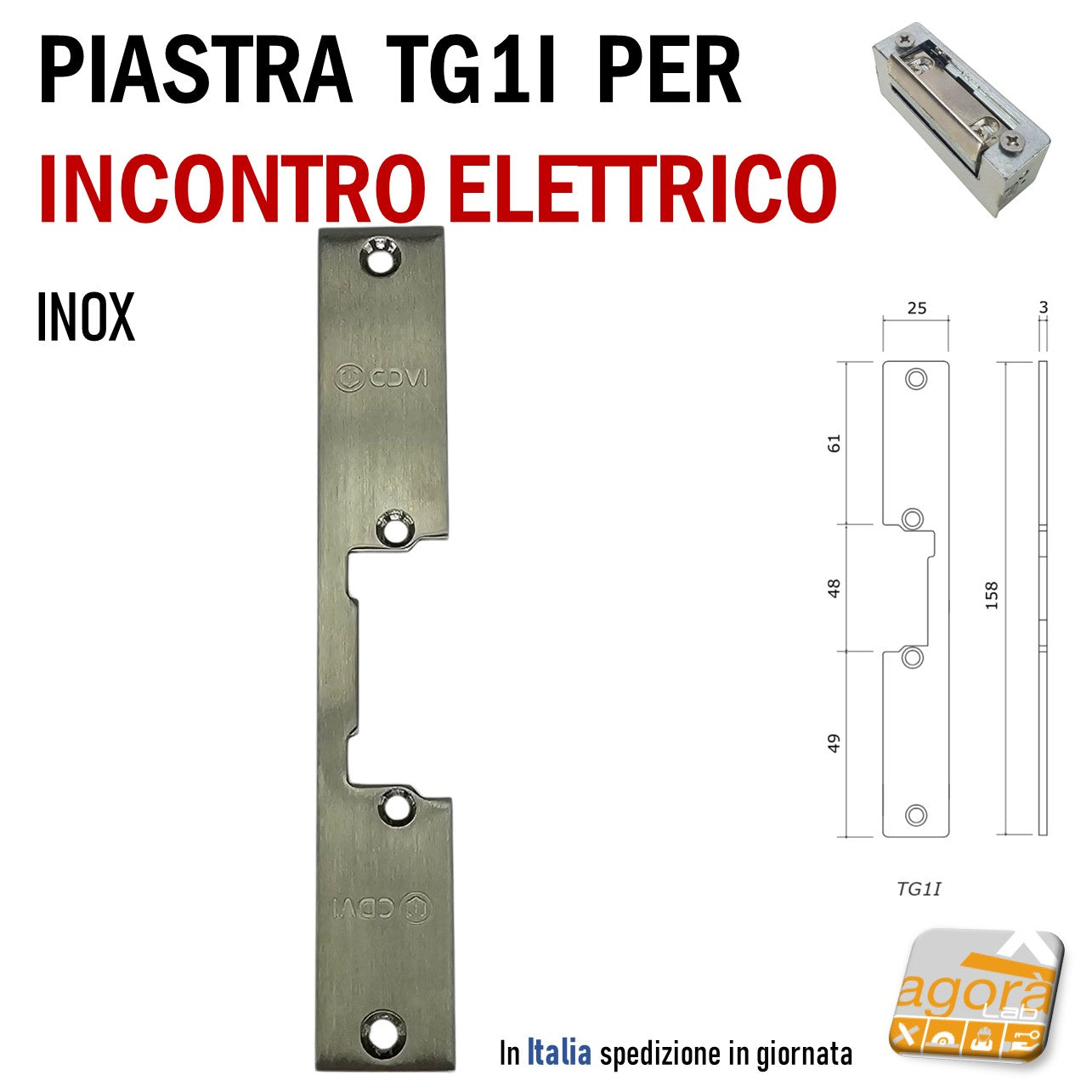 Incontro piastra per Riscontro ELETTRICO contropiastra TG1i F25x158mm INOX CDVI