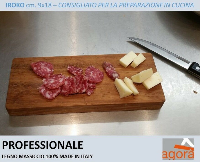 TAGLIERE IN LEGNO MASSICCIO LISTELLATO IROKO-FAGGIO CM.19x15,5x4 PROFESSIONALE