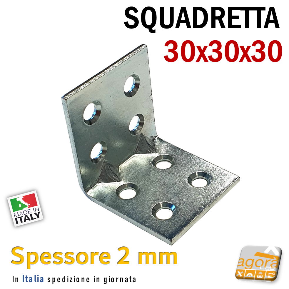 Art. 113349 - SQUADRETTA DI ASSEMBLAGGIO AD ANGOLO RINFORZATA FORATA IN ACCIAIO ZINCATO - ANGOLARE DI FISSAGGIO IN METALLO mm 30x30x30 SPESSORE 2,0 mm