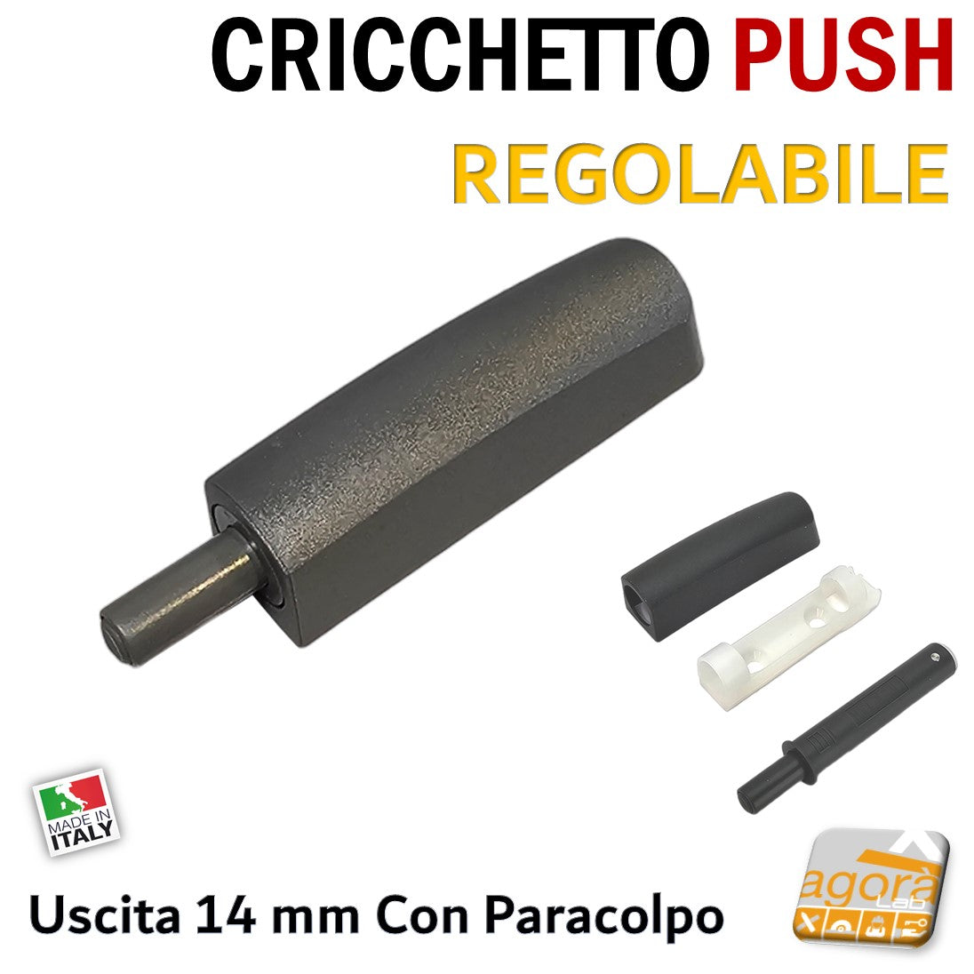 Art.115116 CRICCHETTO PUSH PER MOBILI REGOLABILE DA APPLICARE O DA INCASSARE USCITA 16MM LUNGHEZZA 62MM REGOLABILE CON PARACOLPO