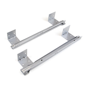 Guide di qualità con squadrette saldate che possono essere avvitate sotto al piano della scrivania o del mobile/ripiano.