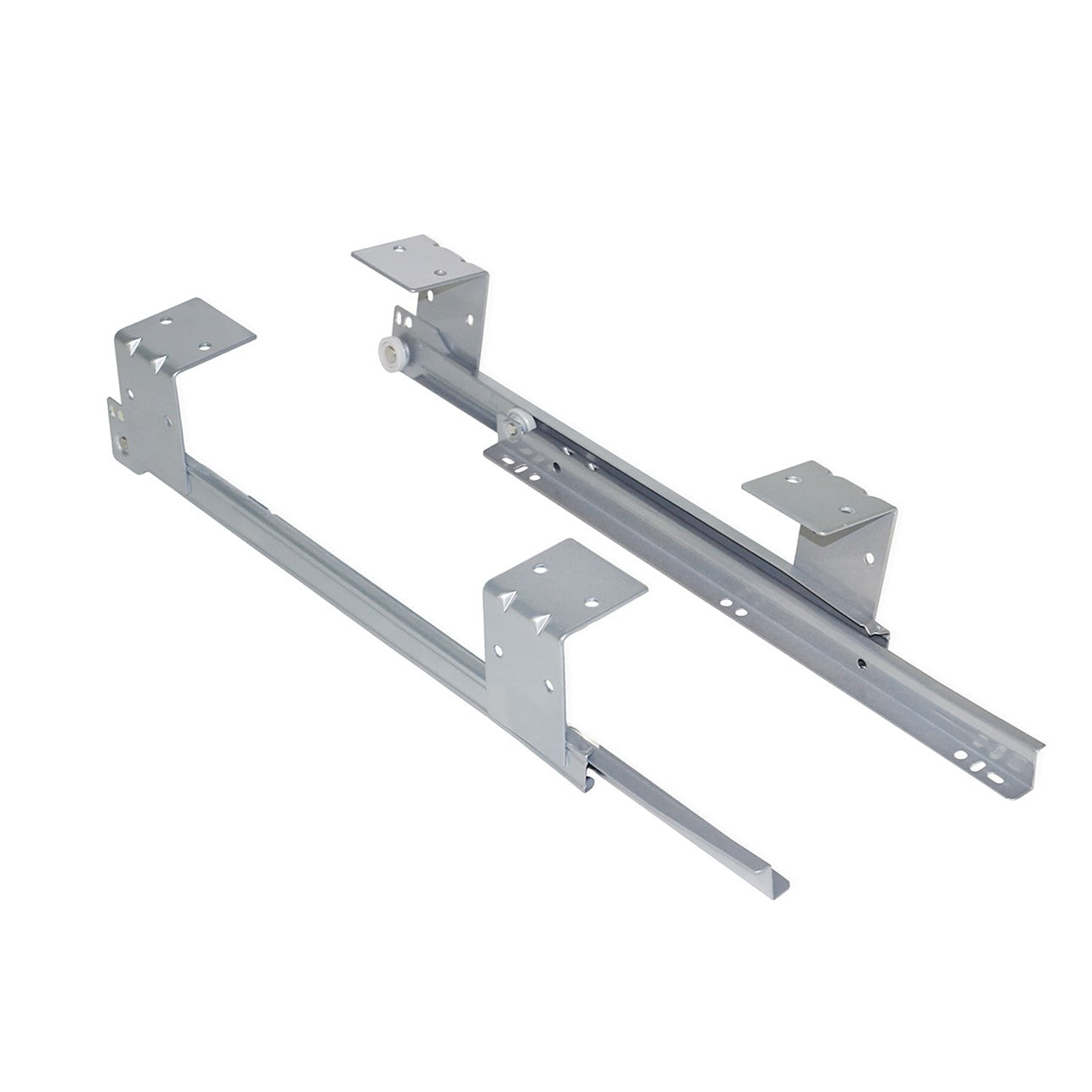 Guide a rulli porta tastiera con staffe saldate per fissaggio al cielo della scrivania. Progettata specialmente per i mobili dell'ufficio, scrivanie e tavoli da lavoro.