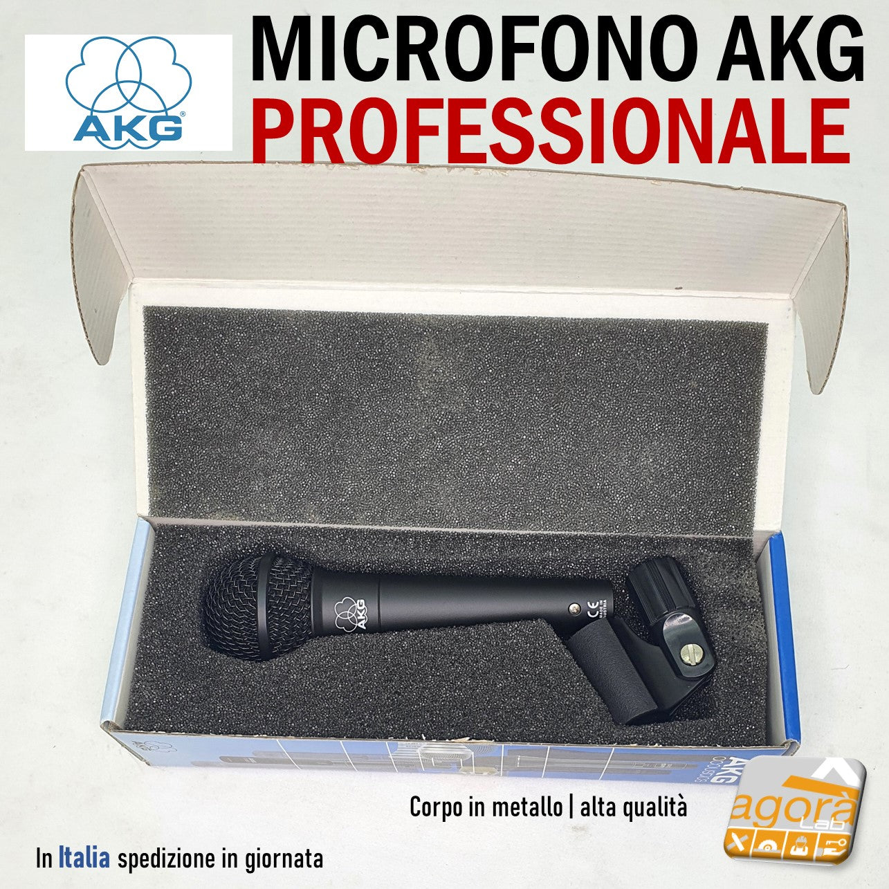 MICROFONO PROFESSIONALE CABLATO AKG NERO L170MM IN METALLO CON SUPPORTO completo nella sua confezione