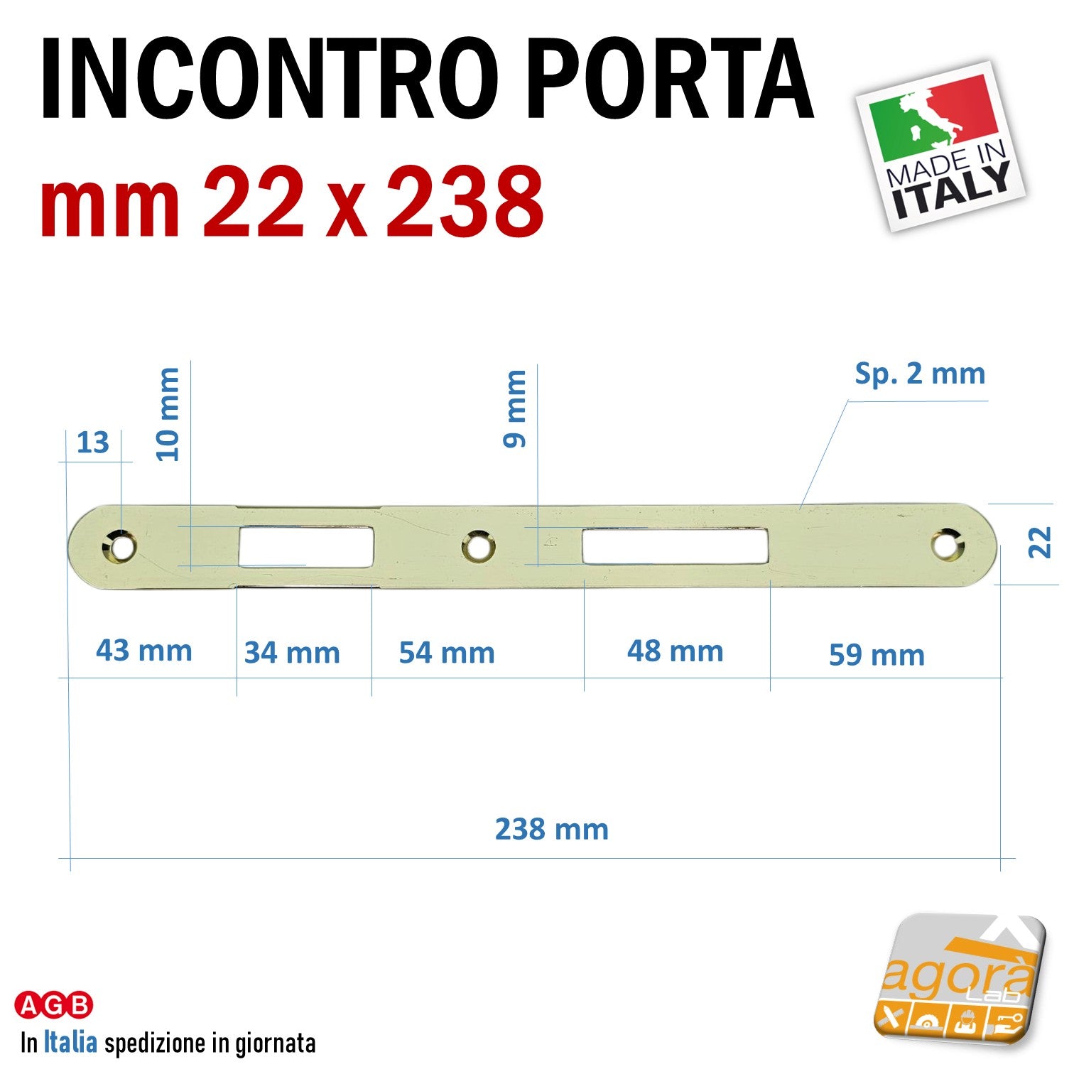 Riscontro Gaccia F22 mm 238x22 Ottone x Serrature Porta Patent Incontro Contropiastra sp 2 AGB
