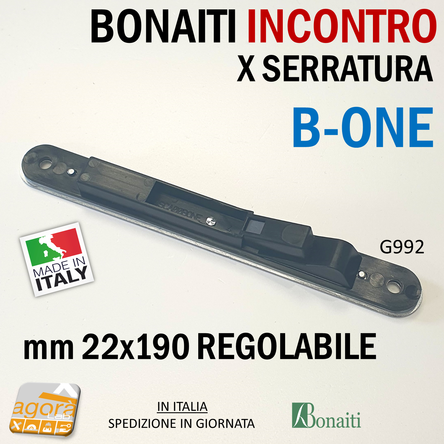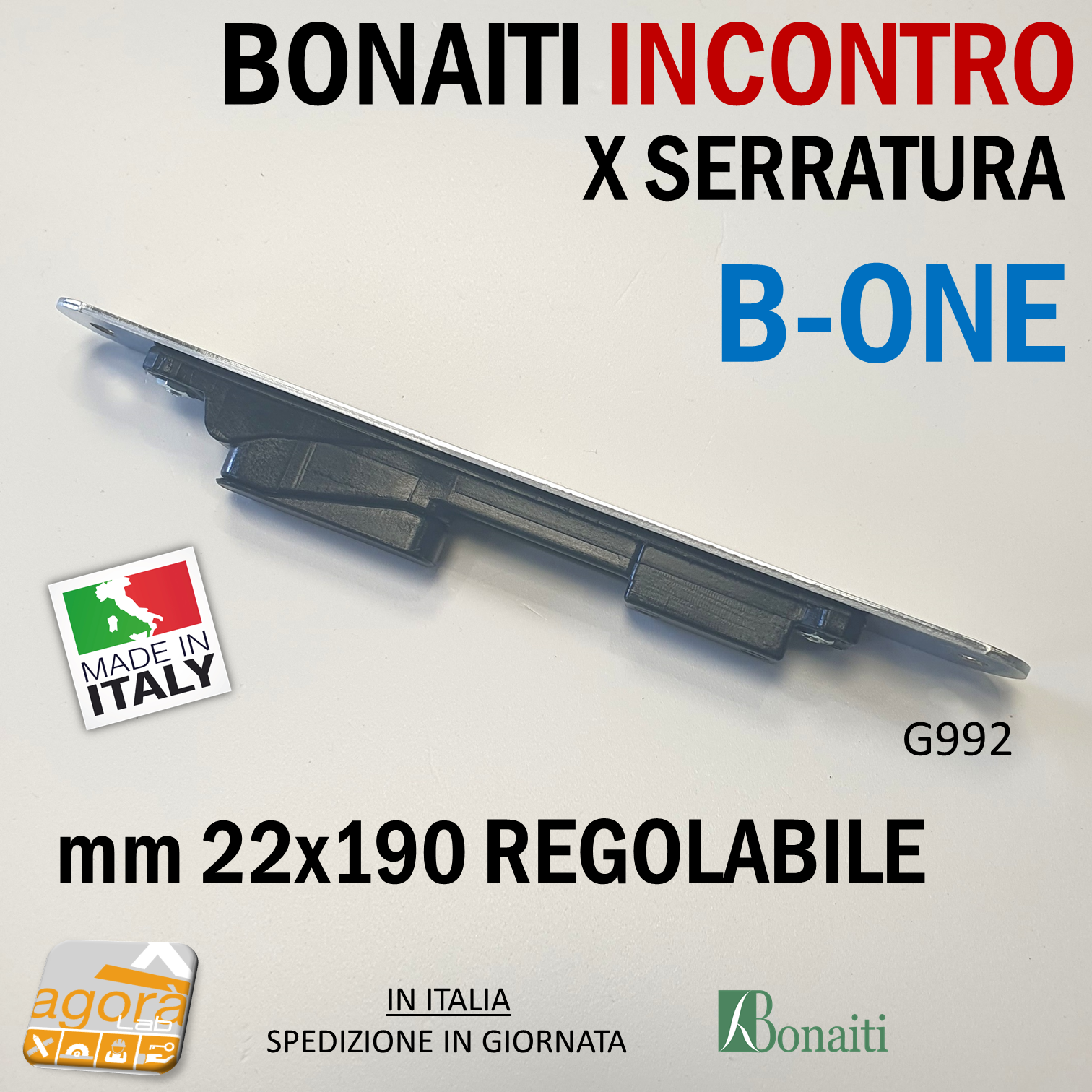 Art.113638 INCONTRO GACCIA G992 PER SERRATURE BONAITI MAGNETICHE SERIE B-ONE CONTROPIASTRA REGOLABILE misura 22x190mm