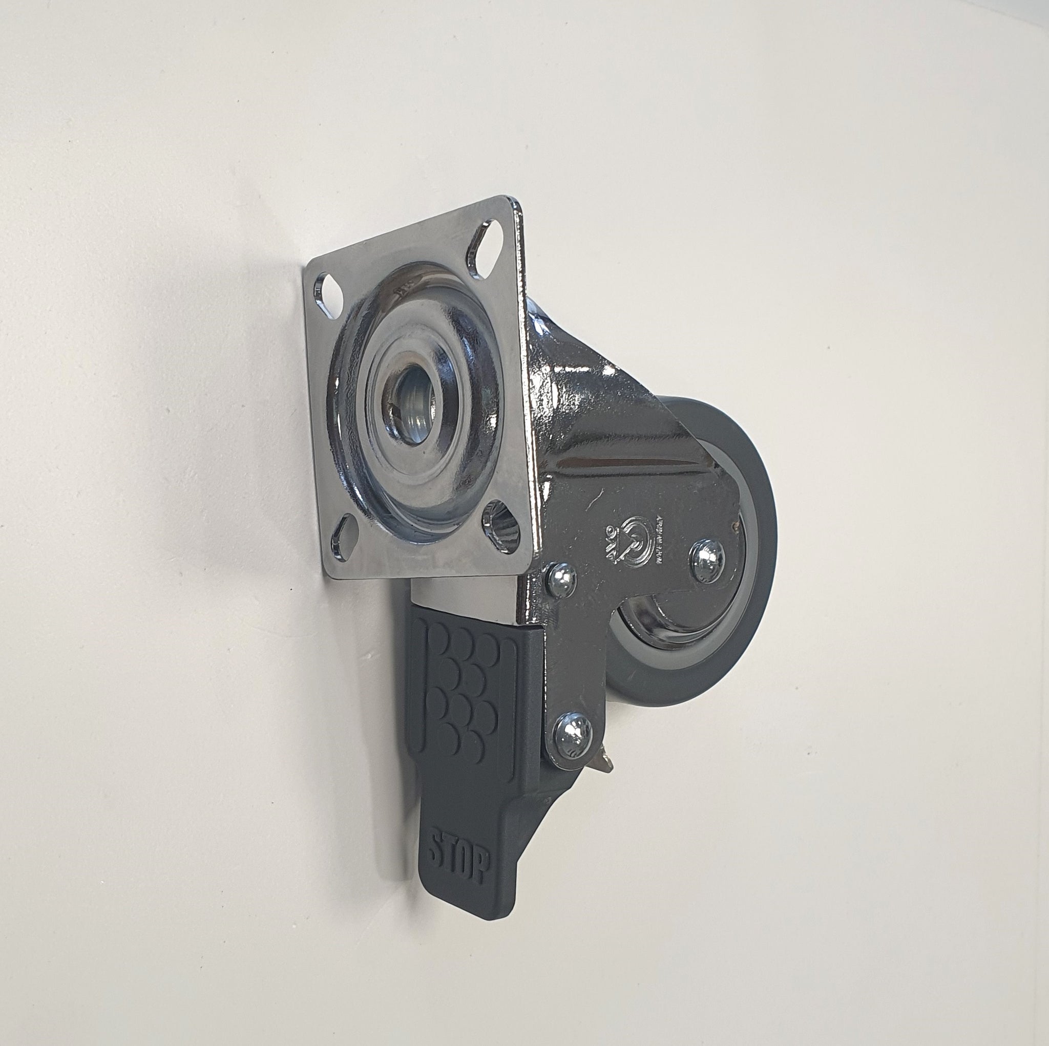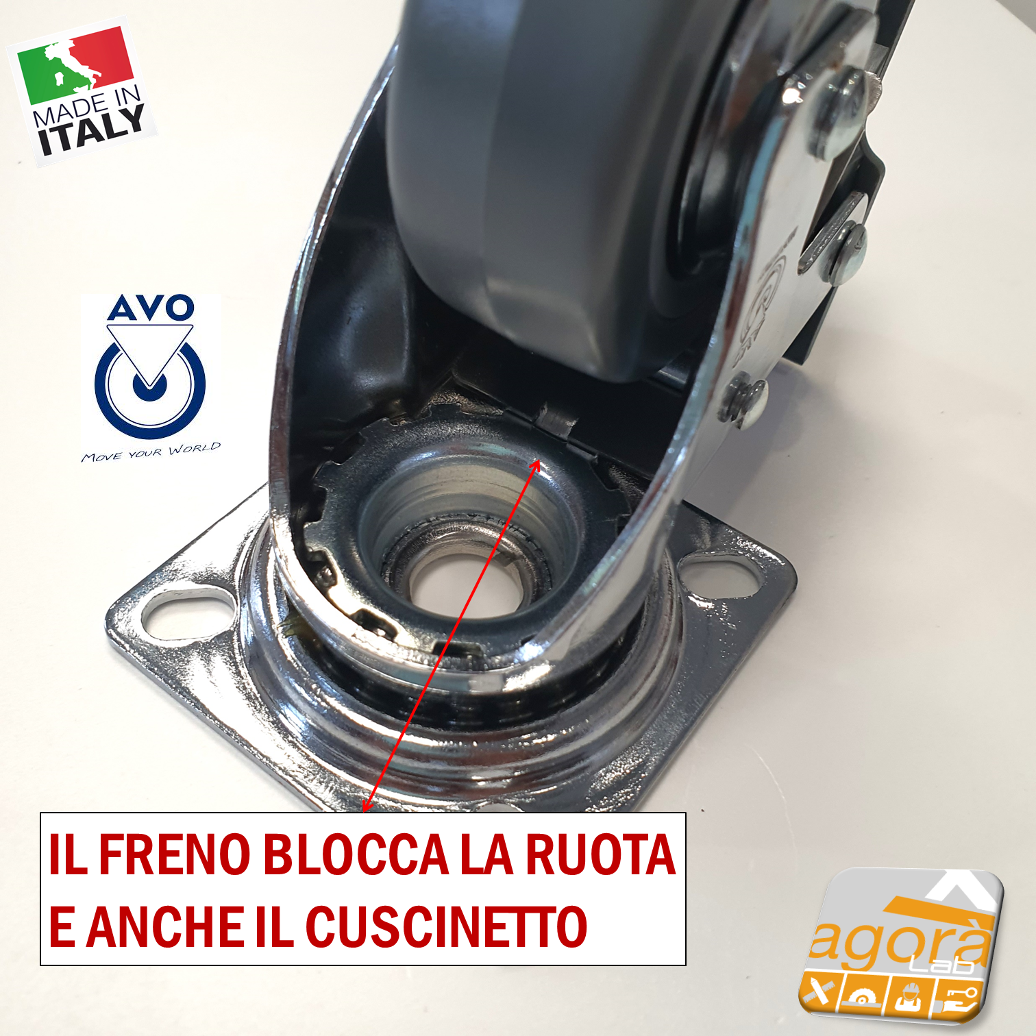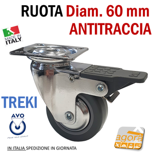 RUOTE RUOTA GIREVOLE D60mm GRIGIA CON PIASTRA 60x60 ANTITRACCIA CROMATA AVO TREKI frenata