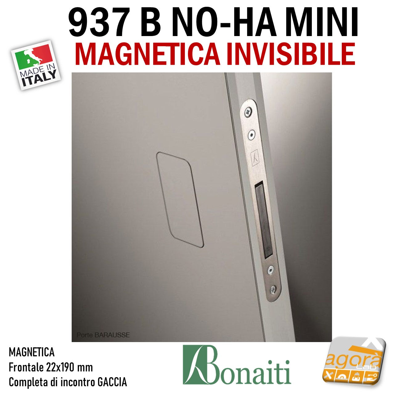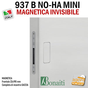 SERRATURA PORTA MAGNETICA B NO-HA MINI BONAITI 937 INVISIBILE PRIVACY Q6 FRONTALE 22X190MM E28 CROMO SATINATO +GACCIA serratura per porta senza maniglia