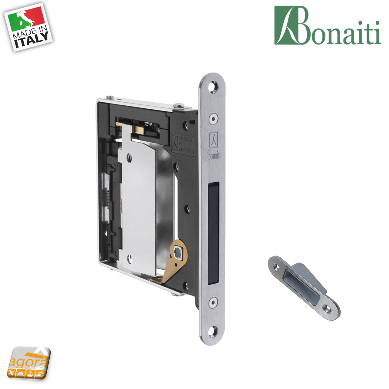 Serratura per porte realizzata in metallo con scrocco magnetico Originale, prodotta in Italia. Di altissima qualità è nata per le moderne porte invisibili permettendo un design senza precedenti eliminando completamente le antiestetiche maniglie sporgenti.