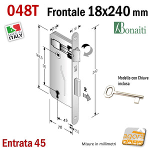 SERRATURA PER PORTA BONAITI PATENT F18X240 CROMO MODELLO 048T Entrata 45 mm Interasse 90mm