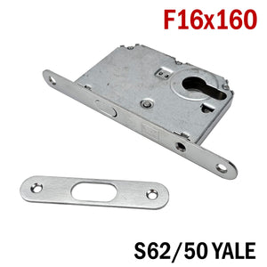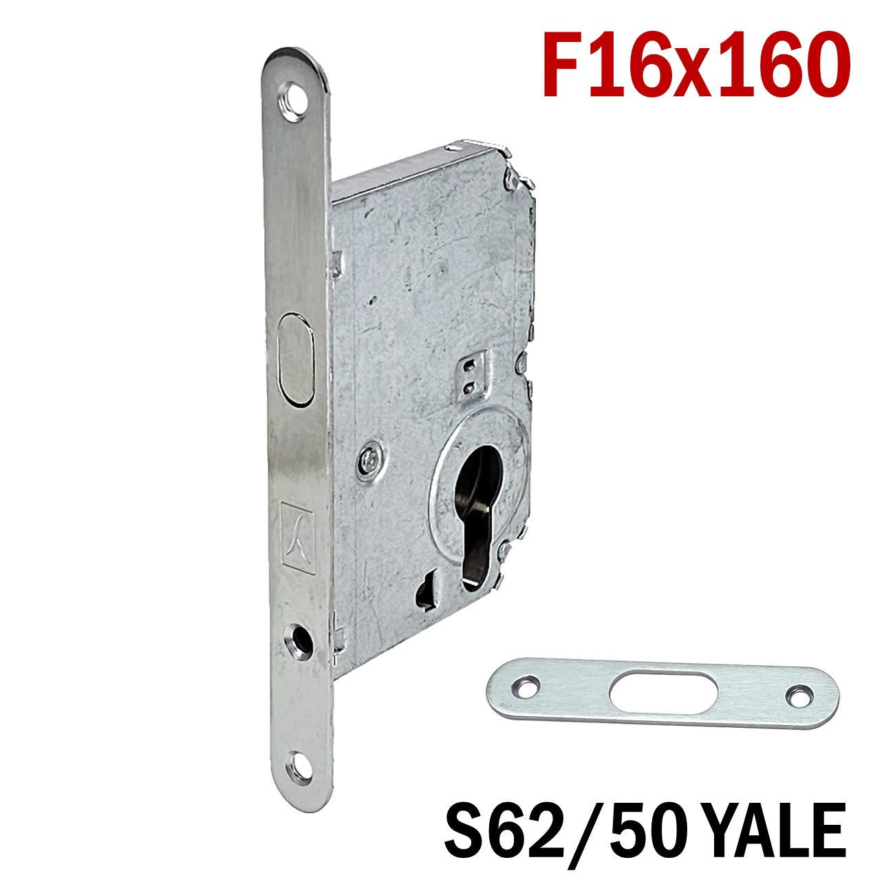 SERRATURE X SCRIGNO PORTA SCORREVOLE GANCIO FRONTALE F16x160mm BONAITI 062 E50 CROMO SATINATO YALE CON INCONTRO GACCIA MODELLO PER EUROCILINDRO CILINDRO DI SICUREZZA