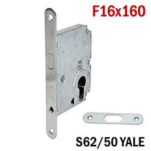 • Carica l'immagine nel visualizzatore di Gallery, SERRATURE X SCRIGNO PORTA SCORREVOLE GANCIO FRONTALE F16x160mm BONAITI 062 E50 CROMO SATINATO YALE CON INCONTRO GACCIA MODELLO PER EUROCILINDRO CILINDRO DI SICUREZZA