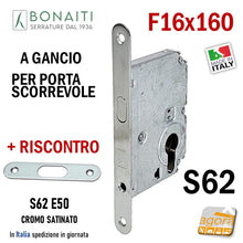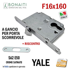 • Carica l'immagine nel visualizzatore di Gallery,  SERRATURA GANCIO PER PORTA SCORREVOLE BONAITI S 62/50 F16X160 YALE CROMO SATINATO COMPLETO DI INCONTRO 4006205087 62-50 ENTRATA 5CM FRONTALE 16CM CROMATA SATINATA PER CHIAVI DIVERSE