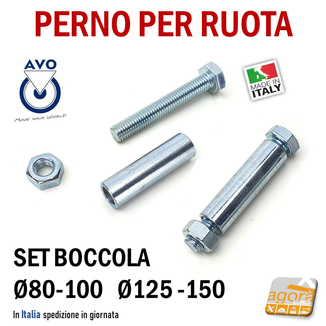 SET BOCCOLA X RUOTA GOMMA NERA DIAMETRO 80-100-125-150MM SCIOLTA 112 S112 AVO INDUSTRIA RUOTE PERNO BOCCOLE 18878 18875 kit cilindro in acciaio per ruote