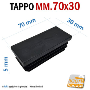 TAPPO RETTANGOLARE mm 30x70 NERO PUNTALE PLASTICA cm 7x3 SOTTOPIEDE ALETTATO TAPPI NERI alta qualità professionale