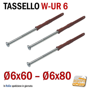 TASSELLO PROLUNGATO NYLON 6X60 6X80 VITE ACCIAIO WUR WURTH SERRAMENTI FORO 6mm TESTA LARGA MURO PENSILI CUCINE BAGNI