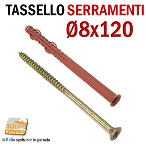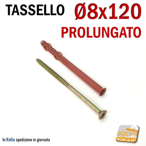 Questo particolare tassello è utilissimo in quanto permette di fare il foro Ø8mm e di inserirlo direttamente senza dover spostare il manufatto in quanto la testa della vite è più grande del diametro del tassello.